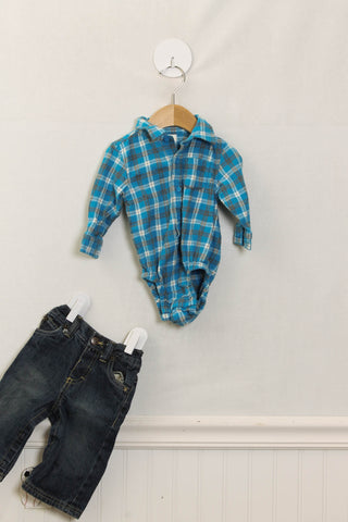 Navy Blue Gymboree long sleeve shirt with snap bottom close Denim Timberland overalls More like this in the The Naturalist collection. More in 3-6 Mo. Boys